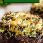 Keywords: Portobello mushrooms, stuffed mushrooms, baked mushrooms, vegetarian appetizer, Gruyère cheese, Parmesan cheese, spinach, savory filling