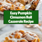 This Pumpkin Cinnamon Roll Casserole is a delicious and comforting breakfast or dessert recipe that combines soft, gooey cinnamon rolls with a rich pumpkin custard. Enhanced with warm pumpkin pie spices and a creamy drizzle, this casserole offers a perfect fall-inspired twist on classic cinnamon rolls, baked to golden perfection and topped with a smooth frosting.