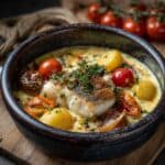 This Quick Fish Chowder with Hot Butter Crackers is a comforting and flavorful seafood soup featuring tender cod, aromatic fennel, and creamy potatoes, complemented by buttery, paprika-spiced saltine crackers for a delightful crunch. Ready in under 40 minutes, it’s perfect for a cozy weeknight meal.