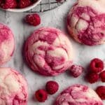 Delight in these vibrant gluten-free Raspberry Cookies, featuring a delicate balance of tart frozen raspberries and sweet raspberry syrup folded into a creamy, buttery dough. Chilled and baked to perfection, these cookies offer a beautiful marbled pink color and a tender texture that makes them irresistible treats perfect for any occasion.