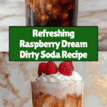 Raspberry Dream Dirty Soda is a refreshing, layered drink combining the fruity sweetness of raspberry syrup, creamy coconut creamer, and the fizzy sparkle of Diet Coke. Topped with whipped cream and fresh raspberries, this easy 5-minute recipe makes a delightful low-calorie treat perfect for any occasion.