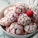 These Raspberry Sugar Cookies are soft, buttery, and perfectly sweet with vibrant swirls of fresh raspberry puree. The marbled effect adds a beautiful pop of color and fruit flavor to classic sugar cookies, making them a delightful treat for any occasion.