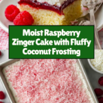 Keywords: Raspberry Zinger Cake, raspberry cake, marshmallow frosting, coconut topping, berry dessert, baked cake, homemade cake