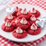 Red Velvet Blossom Cookies are a delightful twist on classic red velvet flavors combined with a gooey chocolate center. These soft, tender cookies topped with a melted candy make a perfect treat for any occasion or holiday.