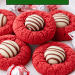 Keywords: red velvet cookies, Hershey hugs cookies, holiday cookies, holiday treats, chocolate cookies, red food coloring cookies, festive cookies