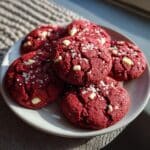 Delight in these soft and chewy Red Velvet Cookies, featuring a perfect blend of cocoa powder and a hint of vanilla for that classic red velvet flavor. These cookies are easy to make and bake to a lovely rich color, offering a delicious twist on traditional red velvet cake in cookie form.