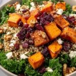 This Roasted Sweet Potato Kale Salad is a vibrant and nutritious dish that combines tender, caramelized sweet potatoes with fresh baby kale and a tangy, honey-lemon dressing. Packed with quinoa, cranberries, feta, and optional walnuts, it’s perfect as a hearty lunch or a satisfying side.