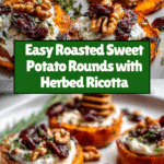 Delight in these Roasted Sweet Potato Rounds topped with creamy herbed ricotta, crunchy walnuts, and sweet dried cranberries. This simple yet elegant appetizer combines the natural sweetness of roasted sweet potatoes with fresh herbs and a variety of textures for a perfect bite-sized treat suitable for any occasion.