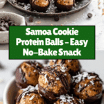 Delicious and nutritious Samoa Cookie Protein Balls inspired by the classic Samoa cookie flavors. These no-bake, energy-boosting snacks combine toasted coconut, creamy almond butter, dates, vanilla protein powder, and rich chocolate for a satisfying treat that’s perfect for a quick snack or post-workout refuel.