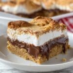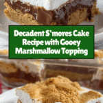 This indulgent S’mores Cake combines the nostalgic flavors of classic campfire treats into a delicious baked dessert. Layers of graham cracker-infused cake, rich Hershey’s chocolate bars, and fluffy marshmallow topping come together to create a gooey, golden-brown treat perfect for any occasion.