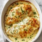 This Smothered Cheesy Sour Cream Chicken recipe features tender boneless chicken breasts baked in a rich, creamy sauce made from sour cream, Parmesan, and mozzarella cheese, seasoned with oregano and garlic. Perfect for a cozy weeknight meal, it combines a luscious cheesy topping with the tang of sour cream for a comforting and satisfying dish.