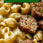 Steak bites and shell pasta in garlic butter Alfredo sauce combine rich, tender beef with creamy, cheesy pasta for a comforting and satisfying meal. This dish is perfect for a cozy dinner when you want something flavorful yet easy to prepare.