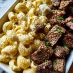 PrintSteak Bites with Shell Pasta in Garlic Butter Alfredo Recipe