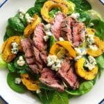 This vibrant steak salad combines tender flank steak with roasted delicata squash, fresh baby spinach, and tangy blue cheese. It’s a perfect balance of savory, sweet, and creamy flavors that makes for a satisfying and elegant meal any night of the week.