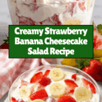 Keywords: Strawberry Banana Cheesecake Salad, no-bake dessert salad, creamy fruit salad, banana pudding dessert