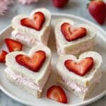 Keywords: Strawberry tea sandwiches, heart-shaped sandwiches, tea party food, strawberry cream cheese sandwiches, no-cook snack