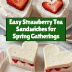 Strawberry tea sandwiches are a delightful and elegant treat perfect for afternoon tea or light gatherings. These dainty sandwiches combine creamy strawberry cream cheese with fresh strawberries, all nestled between soft white bread slices cut into charming heart shapes.