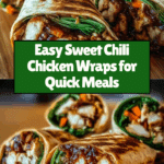 These Sweet Chili Chicken Wraps are a flavorful and easy-to-make meal featuring tender chicken coated in a tangy sweet chili sauce, paired with fresh crisp vegetables, and wrapped in soft tortillas. Perfect for a quick lunch or dinner, these wraps blend savory and sweet flavors with a refreshing crunch, offering a satisfying and colorful dish that can be customized with optional cheese, avocado, and fresh herbs.