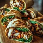 These Sweet Chili Chicken Wraps are a flavorful and easy-to-make meal featuring tender chicken coated in a tangy sweet chili sauce, paired with fresh crisp vegetables, and wrapped in soft tortillas. Perfect for a quick lunch or dinner, these wraps blend savory and sweet flavors with a refreshing crunch, offering a satisfying and colorful dish that can be customized with optional cheese, avocado, and fresh herbs.