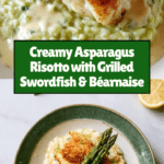 Keywords: Swordfish, Béarnaise sauce, Asparagus risotto, Seafood recipe, French cuisine, Broiled fish, Spring vegetables