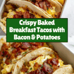 Start your day with these tasty baked breakfast tacos that combine crispy bacon, seasoned potatoes, fluffy scrambled eggs, and melted Monterey Jack cheese. They’re easy to prepare and perfect for a satisfying morning meal or brunch with family and friends.