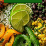 - Assemble Bowls: Divide the lime-infused rice evenly among 4 bowls. Top each bowl with cooked shrimp, sautéed bell peppers and onions, black beans, and seasoned corn. Garnish with extra chopped basil or cilantro and lime slices. Optionally, add sliced avocado and salsa for additional flavor and texture.