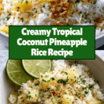 Tropical Coconut Pineapple Rice is a fragrant, flavorful side dish combining jasmine rice with creamy coconut milk and sweet pineapple chunks. Enhanced with toasted shredded coconut, lime juice, and fresh cilantro, this rice brings a refreshing tropical twist perfect for pairing with grilled meats or enjoying on its own.