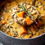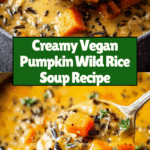 A creamy and hearty Vegan Pumpkin Wild Rice Soup that combines the earthy flavors of pumpkin and wild rice with aromatic vegetables and herbs, enriched with full-fat coconut milk for a luscious texture. Perfect for a cozy meal, this soup is vegan, dairy-free, and comforting for fall or any time of year.