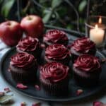 These Wednesday Morticia’s Midnight Rose Garden Cupcakes are moist and rich chocolate cupcakes with a dark, gothic twist. Perfectly fluffy with a hint of cocoa and topped with an elegant, mysterious frosting, decorated with edible glitter and fresh or sugar roses, these cupcakes bring a sophisticated charm to any themed celebration.