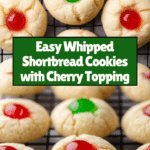 Whipped Shortbread Cookies are delicate, buttery treats with a melt-in-your-mouth texture. These cookies combine softened butter and powdered sugar whipped to a smooth batter, flavored with vanilla and almond extracts, then lightly mixed with a tender blend of all-purpose flour and cornstarch. Topped with glacé cherries for a sweet, festive touch, they bake to a golden perfection perfect for holidays or any special occasion.