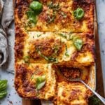 Store any leftovers covered in the refrigerator for up to 3 days. Reheat individual slices in the microwave or warm in a 350°F oven until heated through. For longer storage, you can freeze the lasagna in an airtight container for up to 2 months; thaw overnight in the fridge before reheating.